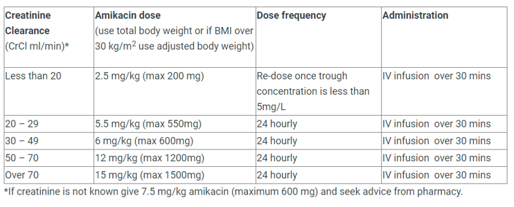 Amikacin Dosing Table
