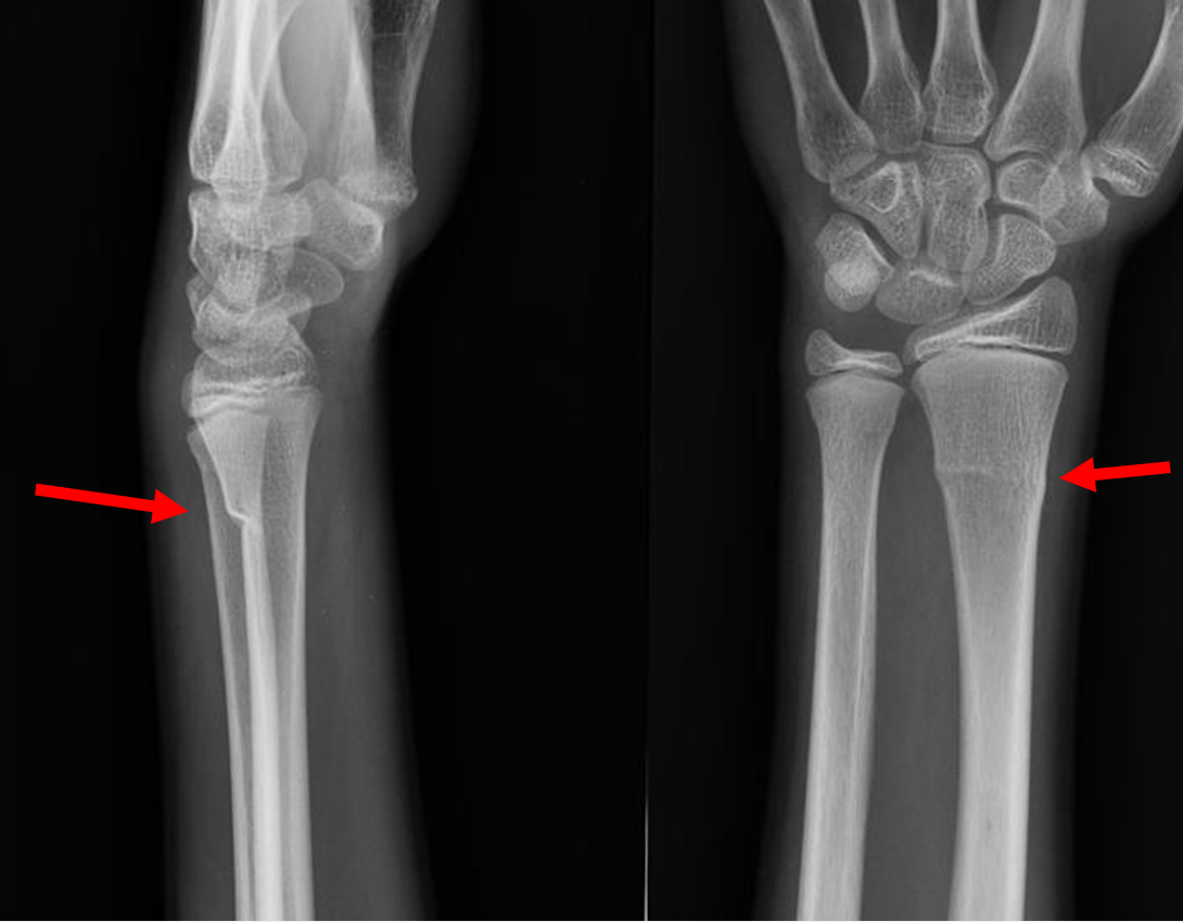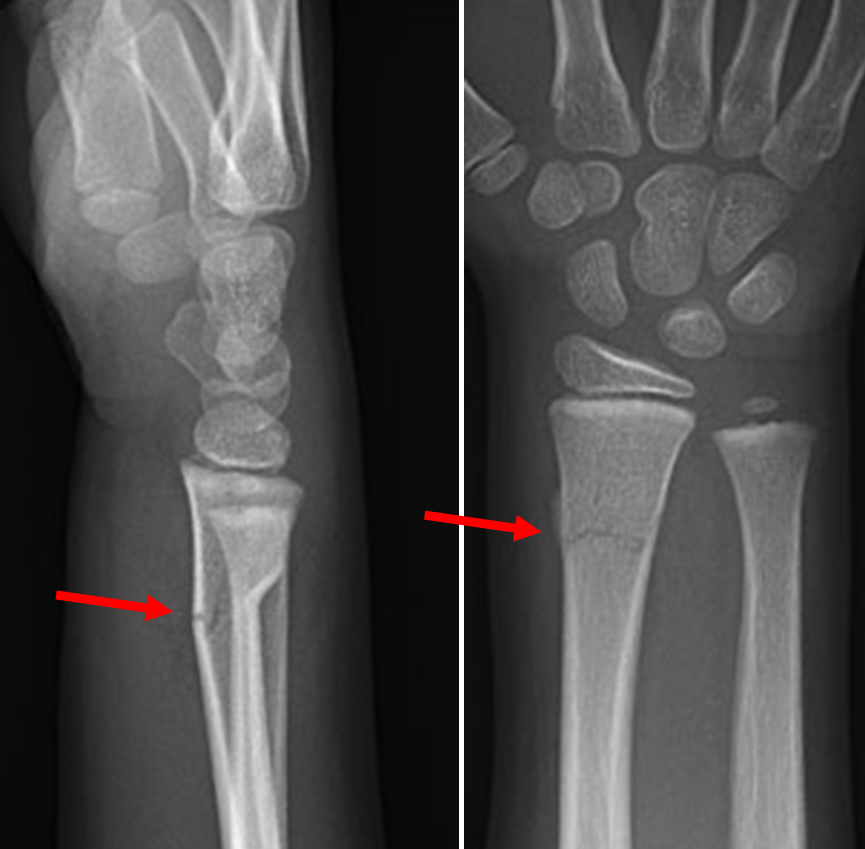 Be careful not to misdiagnose Salter Harris II or Greenstick fractures as a simple Buckle fracture, as these can be unstable3 requiring immobilisation with cast, and orthopaedic follow up.