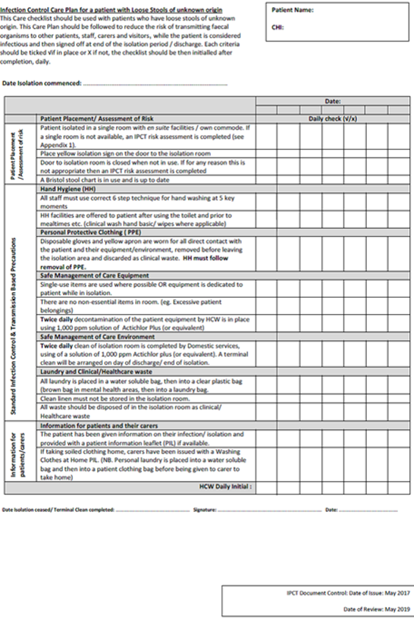 Appendix 1: Infection Control Care Plan for Loose Stools