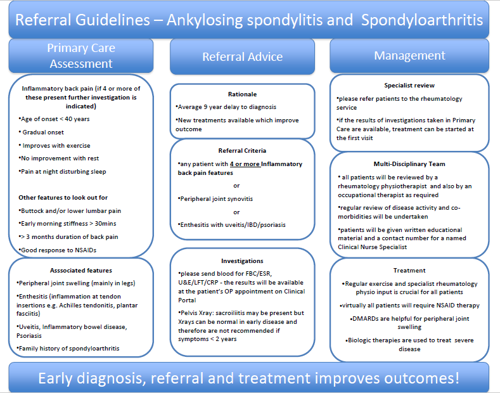 - See GGC ankylosing spondylitis and spondyloarthritis referral guidance below