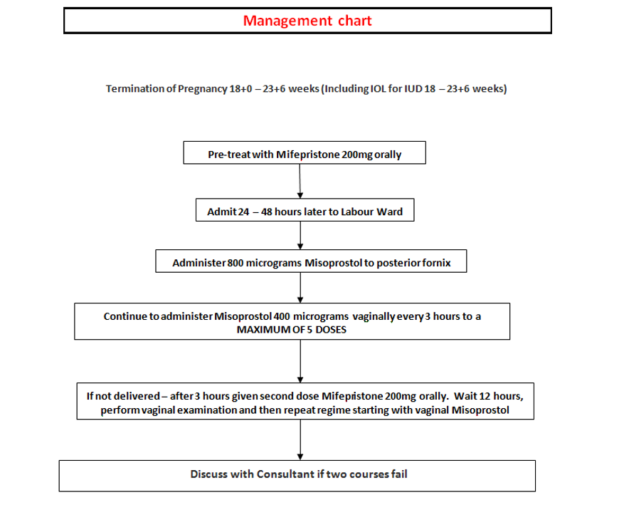 - If after a further 12 hours the patient has not delivered then a vaginal examination should be performed by the Middle Grade Obstetrician. The misoprostol regime can then be repeated.