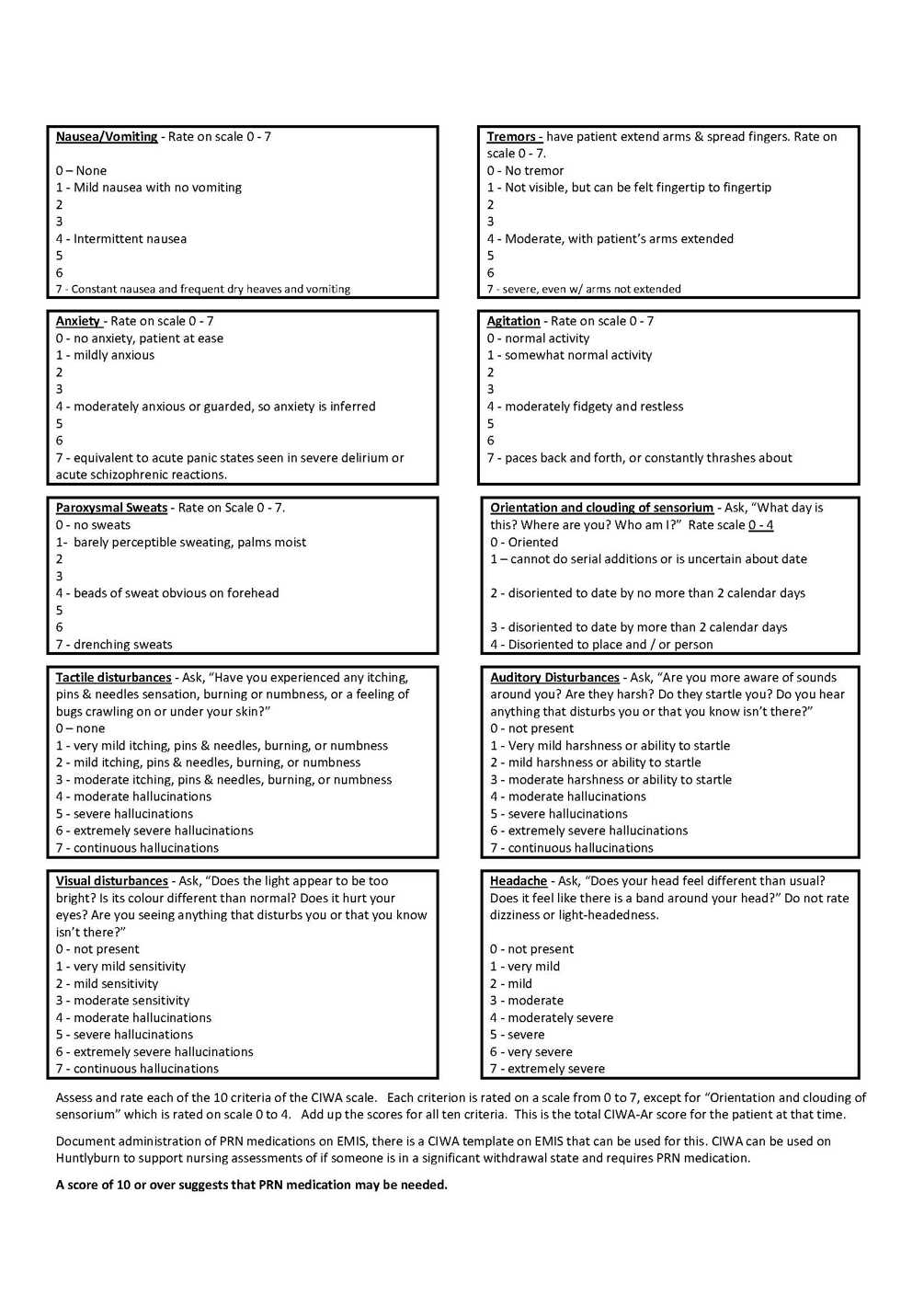 Appendix 3 – Alcohol Withdrawal Assessment Scoring Guidelines (CIWA - Ar)