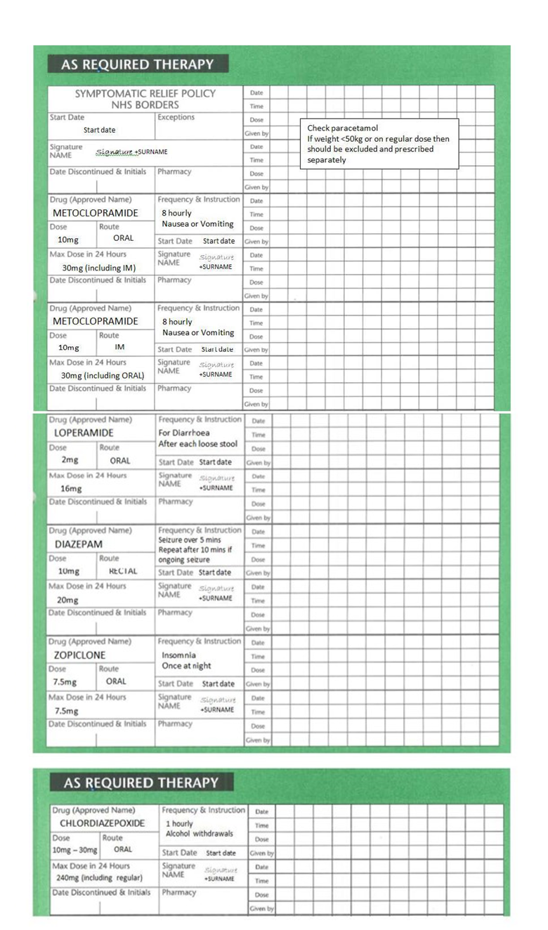 Appendix 1 - Example drug charts showing usual entries for elective detox