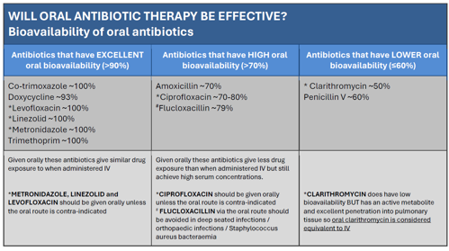 Table: Suggested empiric oral switch