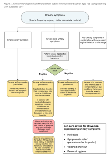 Pharmacy First Service: Non-pregnant women >16 years old with acute uncomplicated lower UTI symptoms may access treatment with trimethoprim or nitrofurantoin via the Pharmacy First service
