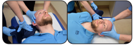 For C-spine injury a head hold must be used (two person application)