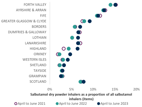- In NHS Scotland only 7.8% of salbutamol inhalers are DPIs.