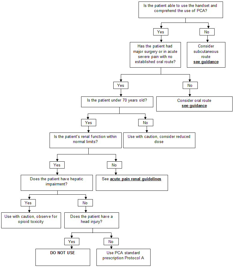 Note: Changing from PCA to subcutaneous injections is not acceptable when an oral route has been established. This may only be acceptable when intravenous access is difficult.