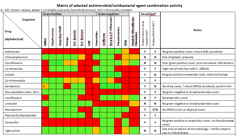 On admission to level 2 or 3 critical care, complete a full antibiotic history in relation to the active infection.  Ensure adequate source control where possible (ie drainage of collections or abscesses).  Consider other causes of systemic deterioration eg recent surgical intervention, acute on chronic respiratory disease.  Use existing protocols for dosing of vancomycin and gentamicin.  Split doses evenly in 24 hours: x 2 = every 12 hours, x 3 = every 8 hours, x 4 = every 6 hours.