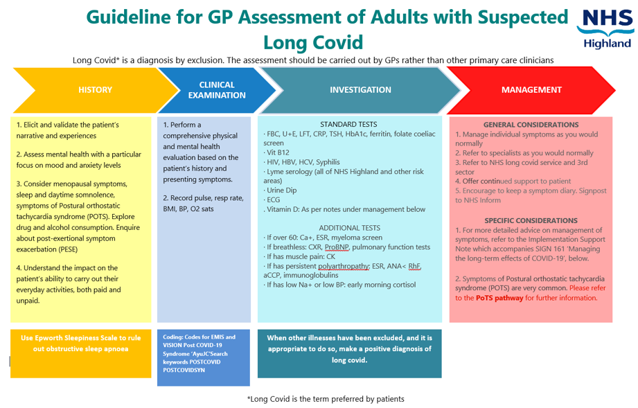 • Additionally, as above, under investigations, long covid patients who remain symptomatic should be tested in accordance with NHS Highland: Vitamin D deficiency (Guidelines)