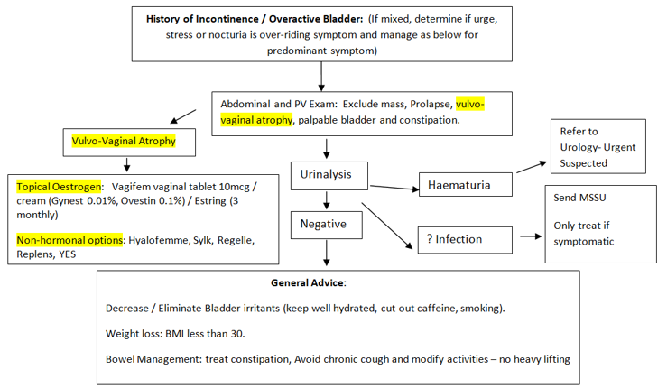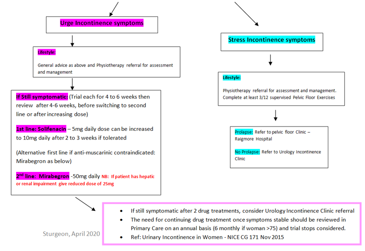 • If no improvement after trial of 2 medications or intolerant to medication refer to urology incontinence clinic