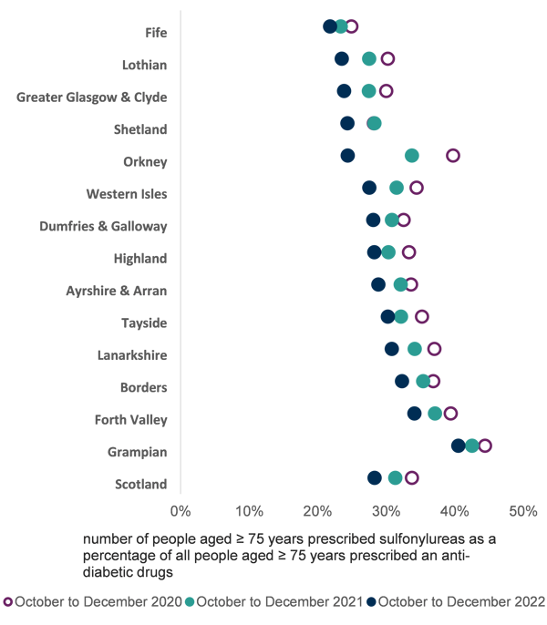- Although this has reduced, most recent data shows that across Scotland there is a significant proportion of those aged 75 years or over still being prescribed an SU, increasing their risks of hypoglycaemia and subsequent falls and hospitalization.